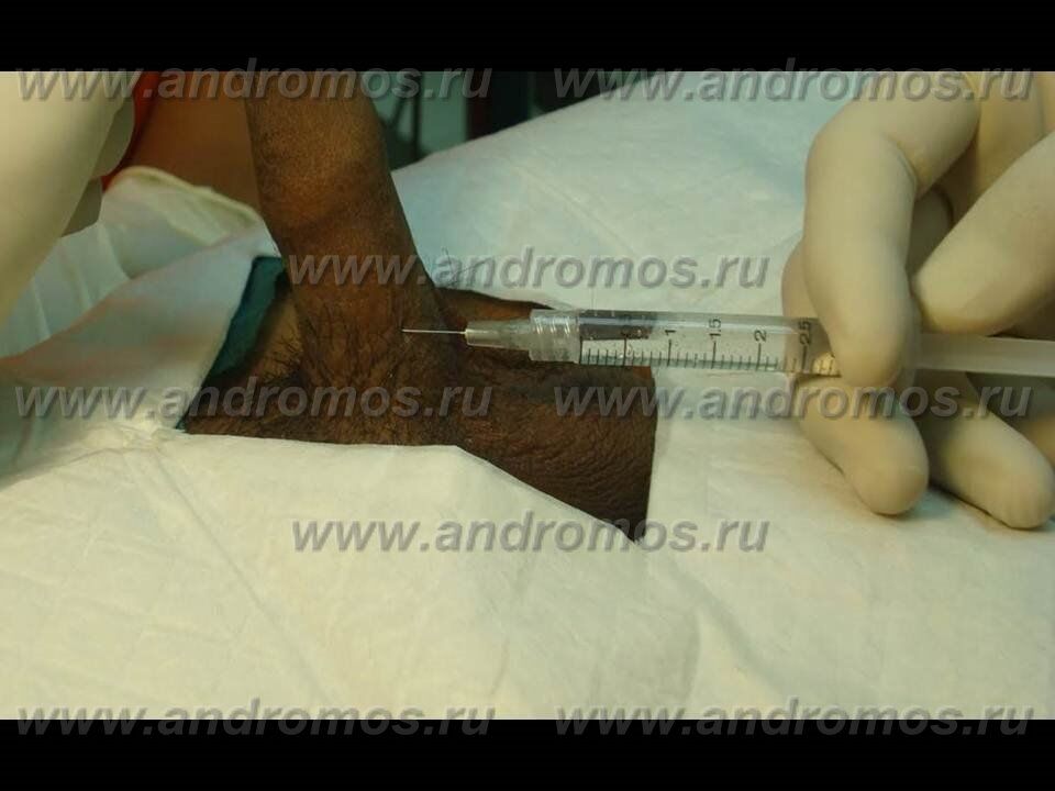 На начальном этапе для купирования эрекции применяют инъекции сосудосуживающих средств непосредственно в кавернозные тела полового члена.