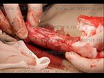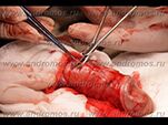 Наиболее эффективное, но вместе с тем и наиболее агрессивное хирургическое лечение преждевременной эякуляции - денервация полового члена. Суть операции заключается в пересечении около половины нервных стволов, идущих к головке пениса. Наиболее крупные нервы при этом сшивают нерассасывающейся нитью, во избежание формирования разрастаний нервной ткани (неврином), которые могут обуславливать боль при половом акте. Операция требует выполнения обрезания крайней плоти на завершающем ее этапе. Швы обычно снимают на 10-14 сутки после вмешательства. Из осложнений довольно редко отмечаются подкожные гематомы, которых можно избежать, осуществляя бинтование полового члена специальным эластичным бинтом. Эффективность операции через 1 месяц после ее проведения достигает 95%. Однако в течение первых 8 месяцев сшитые нервы частично восстанавливают функцию, в связи с чем, к 9 месяцу с момента вмешательства преждевременное семяизвержение может отмечаться у 10% оперированных. Следует заметить, что денервация полового члена в продвинутых учреждениях выполняется под местной анестезией (смотреть видео операции по денервации полового члена ►). Вместе с тем, для качественного осуществления данного вмешательства необходима высокая квалификация хирурга-андролога, а так же микрохирургическое оснащение (узнать стоимость операции ►).